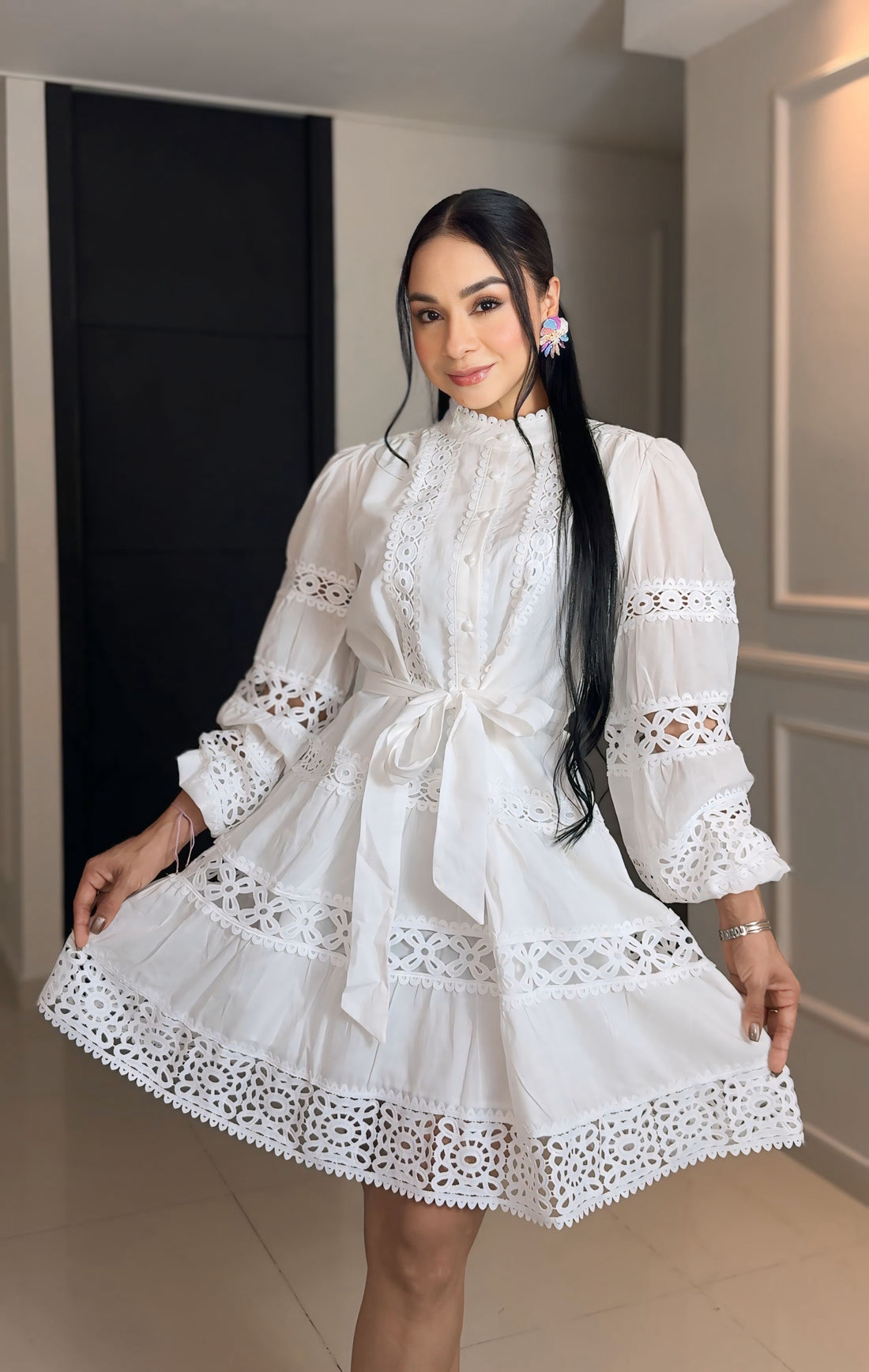 SET BLANCO EN OJALILLO DE DOS PIEZAS MUJER – TOP MANGA LARGA Y FALDA CORTA