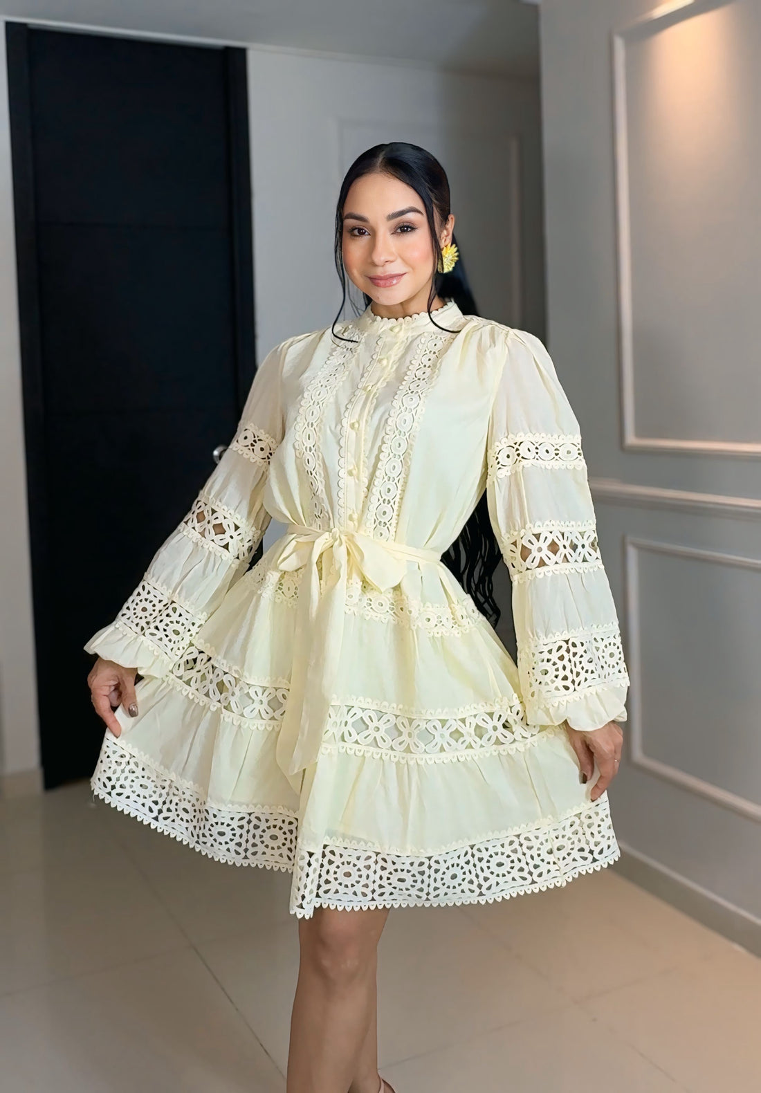 SET ELEGANTE CON APLICACIONES FLORALES Y SILUETA FLUIDA