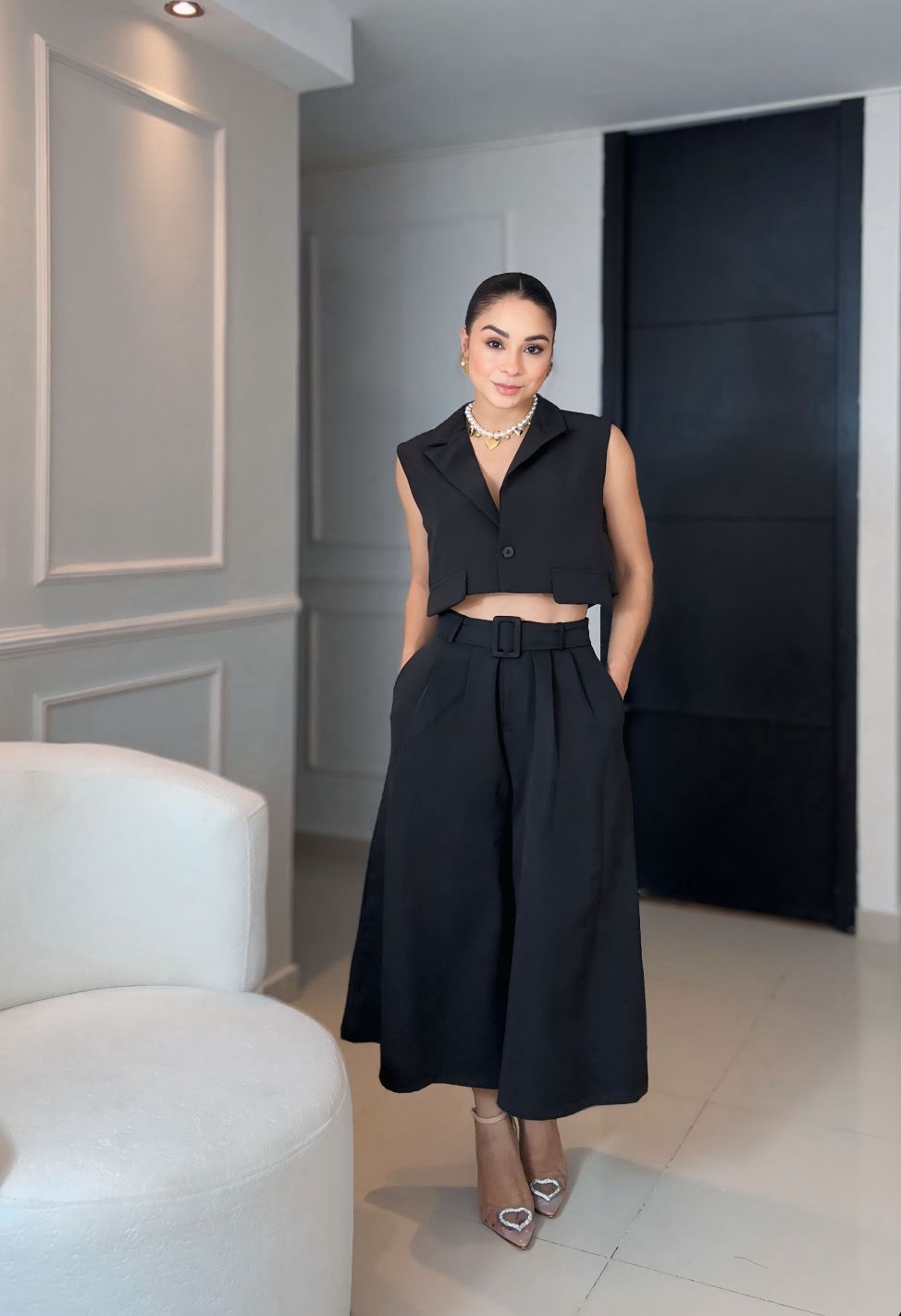 Eleva tu look con este set blanco de dos piezas para mujer, diseñado para resaltar...